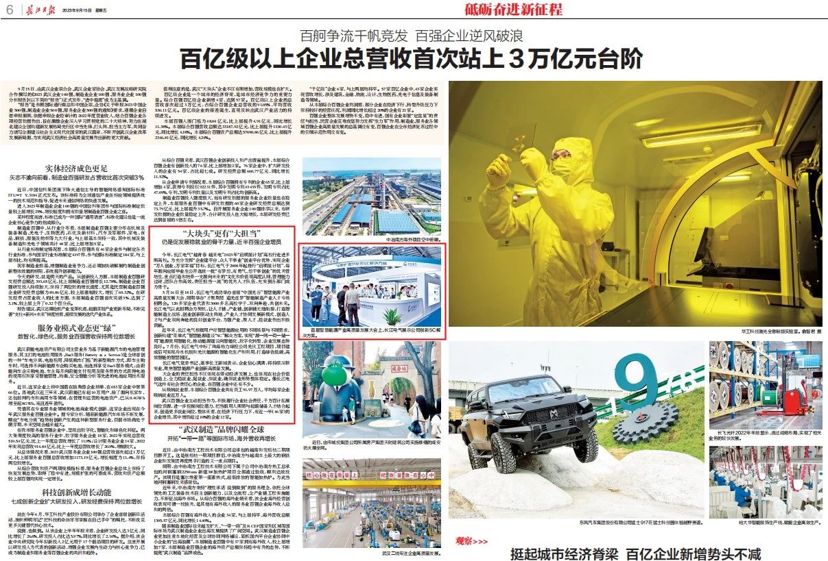 ▲長江電氣榮登2023武漢企業(yè)100強