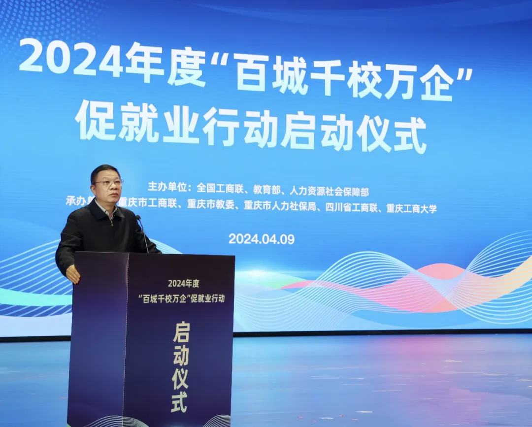4月9日,由全國(guó)工商聯(lián)、教育部、人力資源和社會(huì)保障部主辦,重慶市工商聯(lián)、重慶市教委、重慶市人力社保局、四川省工商聯(lián)、重慶工商大學(xué)承辦的2024年度“百城千校萬(wàn)企”促就業(yè)行動(dòng)啟動(dòng)儀式在重慶舉行。長(zhǎng)江電氣受邀參加啟動(dòng)儀式,公司黨委書(shū)記、董事長(zhǎng)王新城作為全國(guó)三位企業(yè)家代表之一交流發(fā)言。