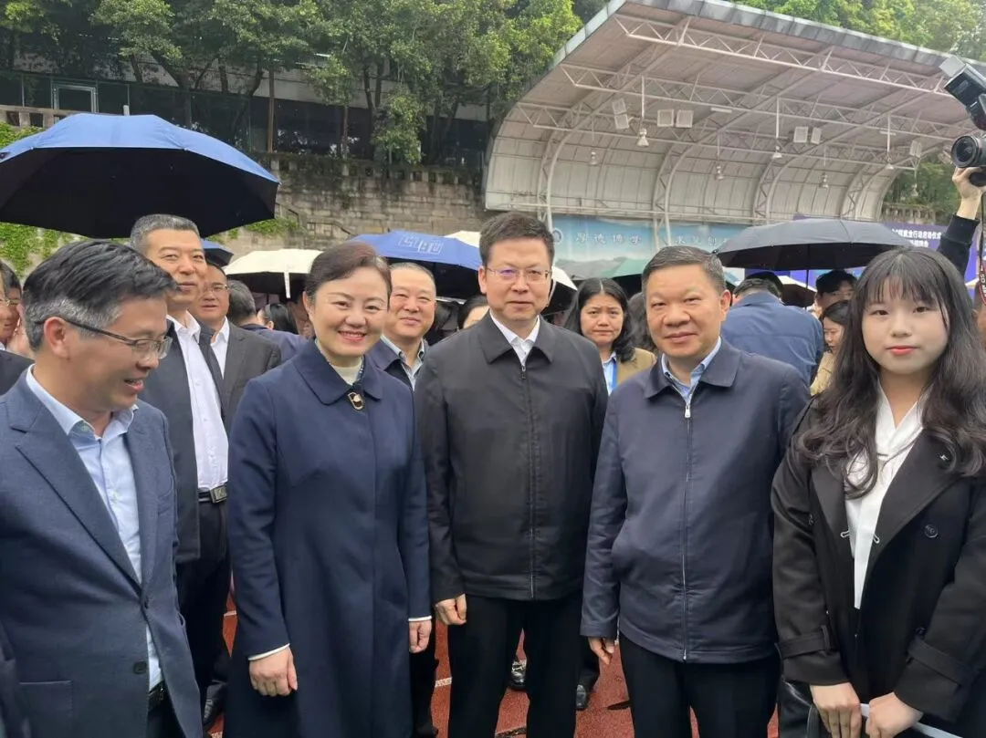 ▲招聘會(huì)現(xiàn)場(chǎng)合影:從左至右依次為,重慶工商大學(xué)黨委書(shū)記曾維倫,重慶市委常委、統(tǒng)戰(zhàn)部部長(zhǎng)盧紅,全國(guó)工商聯(lián)副主席方光華,長(zhǎng)江電氣黨委書(shū)記、董事長(zhǎng)王新城,應(yīng)聘學(xué)子